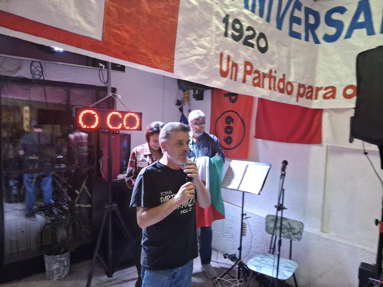 Este domingo 5 de octubre se realizó la conmemoración del 105 aniversario del PCU en la ciudad de Tacuarembó. Debido a las intensas lluvias la actividad que iba a hacerse en la calle debió trasladarse al local del Frente Amplio, que se llenó con las y los militantes. Enrique Rodríguez Viera y una cuerda de tambores adhirieron con su arte a la celebración. Se recibieron saludos de varios Comité de Base del FA y sectores frenteamplistas. Hicieron uso de la palabra, Isabel Rodríguez, presidenta del FA de Tacuarembó; Fernando Micheloni, edil de la 1001 y el FA y secretario de la Departamental del PCU; la diputada Natalia Díaz, en nombre de la UJC y el integrante de la dirección del PCU, Gabriel Mazzarovich.